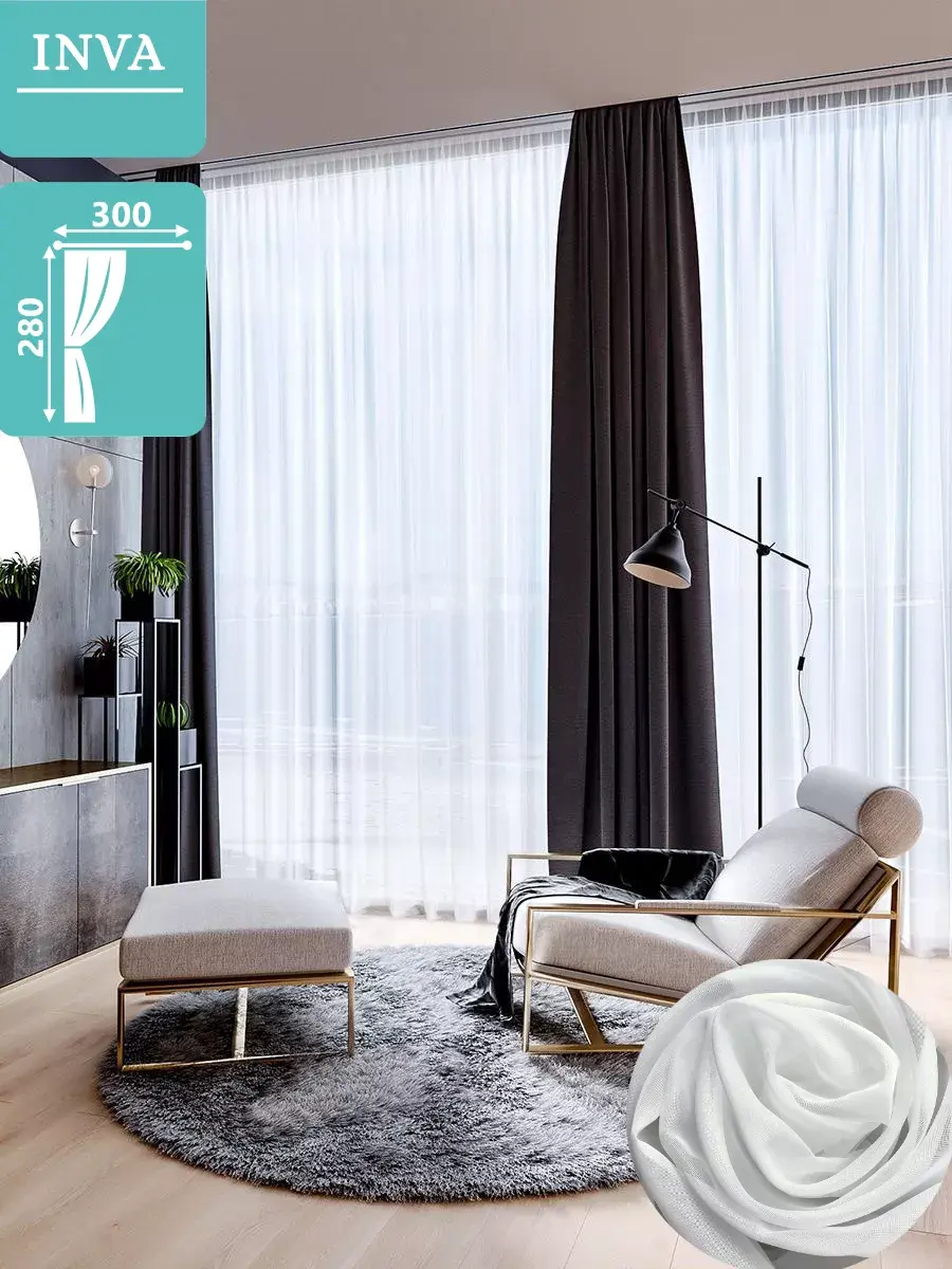 Тюль из полупрозрачной вуали, высота 280 на 300 ширина. Тюль белый, будет отличным декором для гостиной, для спальни, для кухни, для детской комнаты. Тюль подходит для потолочного карниза, а так же для карниза со штангой с диаметром до 30 мм. К шторе пришита шторная белая лента шириной 6см, которая легко стягивается на четыре кордовые нити и создает аккуратные складки в форме "бабочки". Тюль в гостиную, в спальню 280 на 300 мягкая и легкая с элегантными складками, идеально вписывается в интерьер. Обязательно проверьте нити в шторной ленте, они должны быть надежно завязаны с двух сторон. Мягкая, легкая занавеска с элегантными складками, идеально вписывается в интерьер. Вуаль хорошо пропускает свет, устойчива к воздействию прямых солнечных лучей. В составе ткани полиэфирное волокно, что делает изделие практичным и устойчивым к большому количеству стирок. Уход: стирка при 40 градусах, деликатный отжим, отбеливание запрещено.