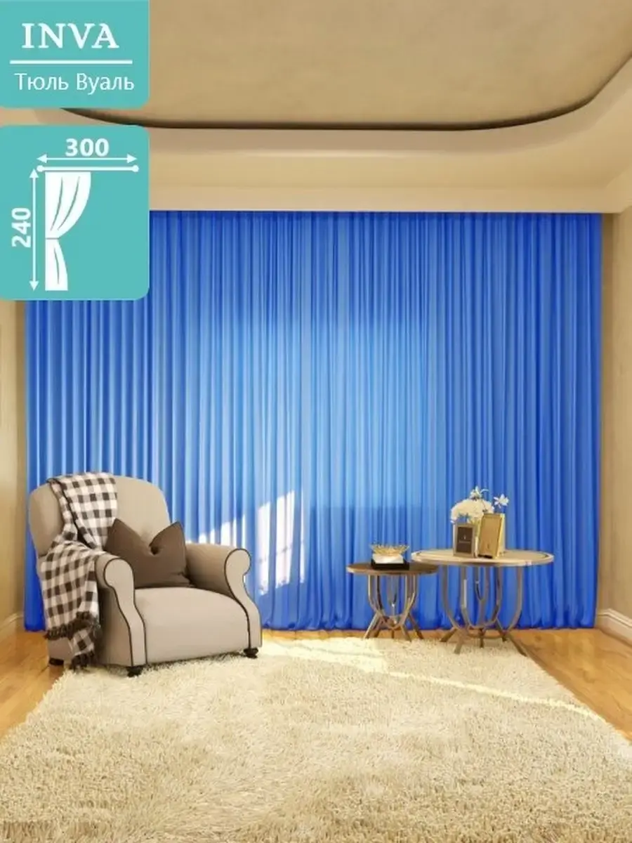 Готовая тюль штора вуаль 1 шт. Идеально подойдет для оформления интерьера в любой комнате, высота 240 см ширина 300 см. Воздушная, легкая и красивая, будет стильным декором для комнат в вашем доме. Длинная декоративная тюлевая штора на шторной ленте 2,4 м х 3 м будет отличным аксессуаром для гостиной, для спальни, для кухни и в детскую комнату или в качестве декора в беседке в саду. Придает уют и понравится и взрослым и детям. Имеет 3 варианта крепления: на крючки с помощью шторной ленты, на кольца или на штангу диаметром до 20 мм. Интерьерная тюль вуаль 240х300 сочетается с портьерами, с короткими и длинными нитяными, рулонными шторами. С гардинами канвас, лен, мрамор, рогожка. Со шторами блэкаут blackout. Тонкий тюль-вуаль украсит оконный проем в любой комнате: в столовой, кабинете и детской, на кухне как кухонный вариант. Вы можете повесить тюль на гардину на балконе, лоджии, веранде или в качестве декора в беседке в саду. Зановеска вуаль подойдет в дом, квартиру, для дачи и на балкон. Тюль занавеска подходит для потолочного карниза шириной до 300 сантиметров а так же для карниза со штангой с диаметром до 20 мм. К шторе пришита шторная лента шириной 6см, которая легко стягивается на четыре кордовые нити и создает аккуратные складки в форме "бабочки". Обязательно проверьте нити в шторной ленте, они должны быть надежно завязаны с одного края. Мягкая, легкая туль с элегантными складками, идеально вписывается в интерьер. Вуаль хорошо пропускает свет, устойчива к воздействию прямых солнечных лучей. В составе ткани полиэфирное волокно, что делает изделие практичным и устойчивым к большому количеству стирок. Уход: стирка при 30 градусах, деликатный отжим, отбеливание запрещено.
