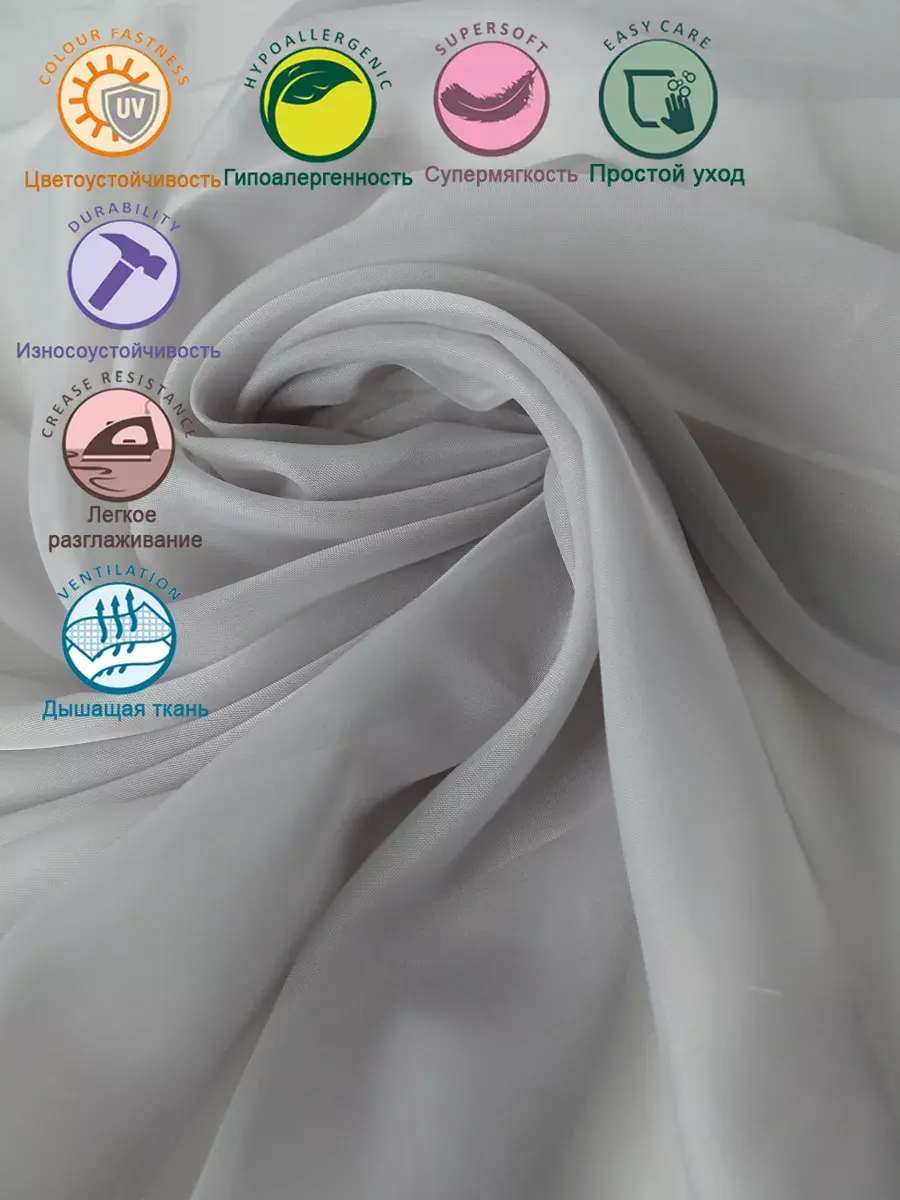 Тюль из полупрозрачной вуали, высота 240 на 700 ширина. Тюль цветной, будет отличным декором для гостиной, для спальни, для кухни, для детской комнаты. Тюль подходит для потолочного карниза, а так же для карниза со штангой с диаметром до 30 мм. К шторе пришита шторная белая лента шириной 6см, которая легко стягивается на четыре кордовые нити и создает аккуратные складки в форме "бабочки". Тюль в гостиную, в спальню 240 на 700 мягкая и легкая с элегантными складками, идеально вписывается в интерьер. Обязательно проверьте нити в шторной ленте, они должны быть надежно завязаны с двух сторон. Мягкая, легкая занавеска с элегантными складками, идеально вписывается в интерьер. Вуаль хорошо пропускает свет, устойчива к воздействию прямых солнечных лучей. В составе ткани полиэфирное волокно, что делает изделие практичным и устойчивым к большому количеству стирок. Уход: стирка при 40 градусах, деликатный отжим, отбеливание запрещено.