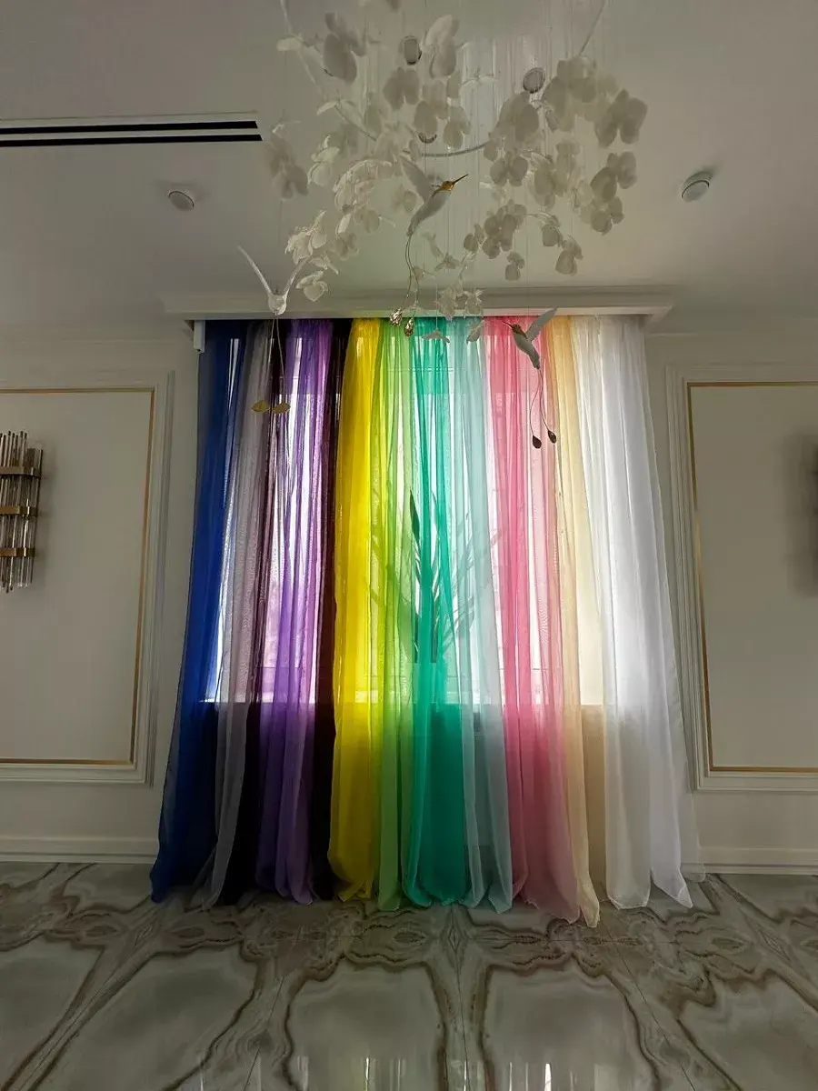 Тюль из полупрозрачной вуали, высота 250 на 700 ширина. Тюль цветной, будет отличным декором для гостиной, для спальни, для кухни, для детской комнаты. Тюль подходит для потолочного карниза, а так же для карниза со штангой с диаметром до 30 мм. К шторе пришита шторная белая лента шириной 6см, которая легко стягивается на четыре кордовые нити и создает аккуратные складки в форме "бабочки". Тюль в гостиную, в спальню 250 на 700 мягкая и легкая с элегантными складками, идеально вписывается в интерьер. Обязательно проверьте нити в шторной ленте, они должны быть надежно завязаны с двух сторон. Мягкая, легкая занавеска с элегантными складками, идеально вписывается в интерьер. Вуаль хорошо пропускает свет, устойчива к воздействию прямых солнечных лучей. В составе ткани полиэфирное волокно, что делает изделие практичным и устойчивым к большому количеству стирок. Уход: стирка при 40 градусах, деликатный отжим, отбеливание запрещено.