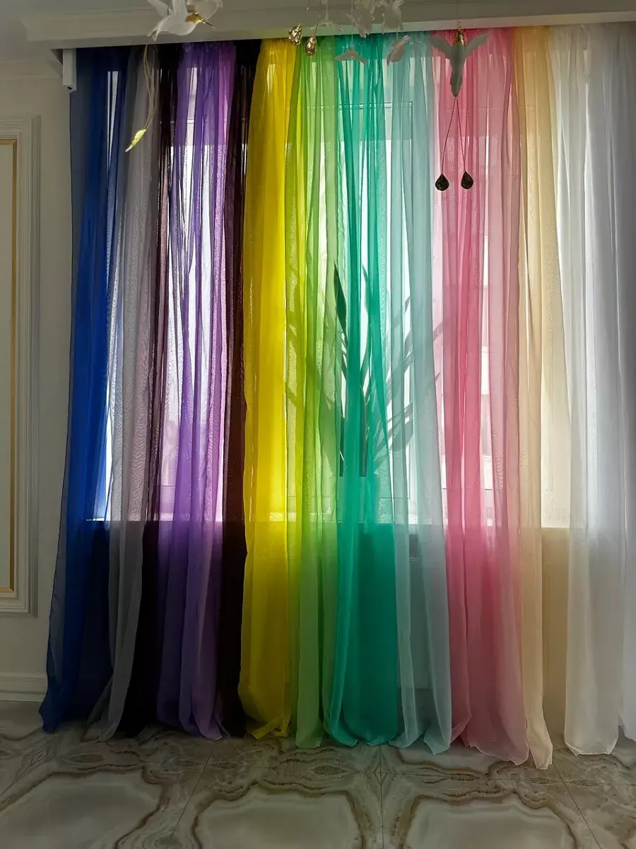 Тюль из полупрозрачной вуали, высота 260 на 700 ширина. Тюль цветной, будет отличным декором для гостиной, для спальни, для кухни, для детской комнаты. Тюль подходит для потолочного карниза, а так же для карниза со штангой с диаметром до 30 мм. К шторе пришита шторная белая лента шириной 6см, которая легко стягивается на четыре кордовые нити и создает аккуратные складки в форме "бабочки". Тюль в гостиную, в спальню 260 на 700 мягкая и легкая с элегантными складками, идеально вписывается в интерьер. Обязательно проверьте нити в шторной ленте, они должны быть надежно завязаны с двух сторон. Мягкая, легкая занавеска с элегантными складками, идеально вписывается в интерьер. Вуаль хорошо пропускает свет, устойчива к воздействию прямых солнечных лучей. В составе ткани полиэфирное волокно, что делает изделие практичным и устойчивым к большому количеству стирок. Уход: стирка при 40 градусах, деликатный отжим, отбеливание запрещено.